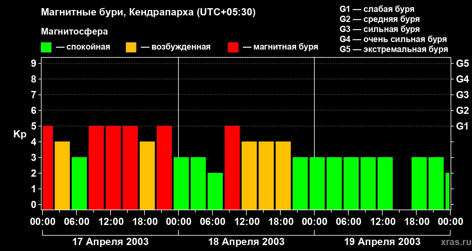 Магнитные бури в Кендрапархе — 19 апреля 2003 года
