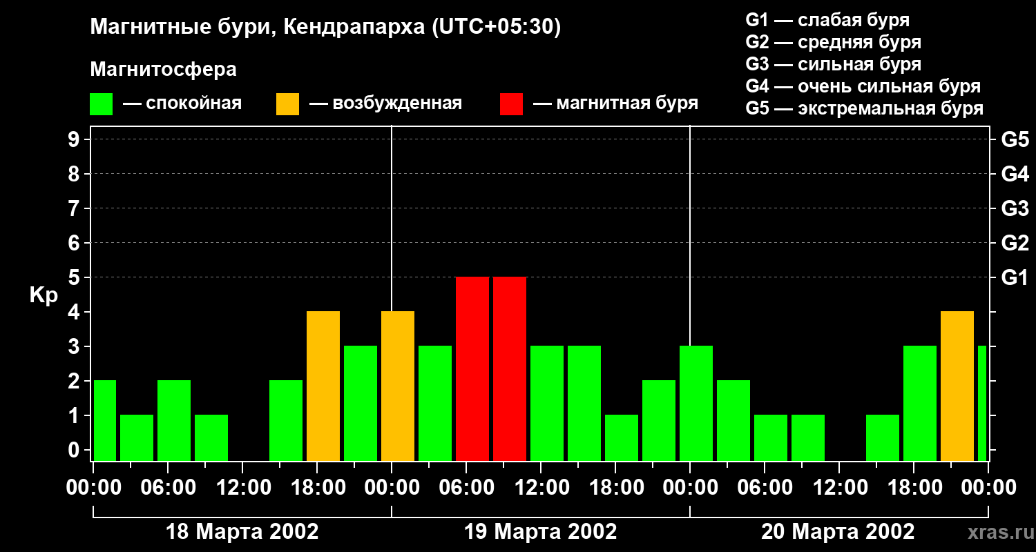Магнитные бури в Кендрапархе — 20 марта 2002 года
