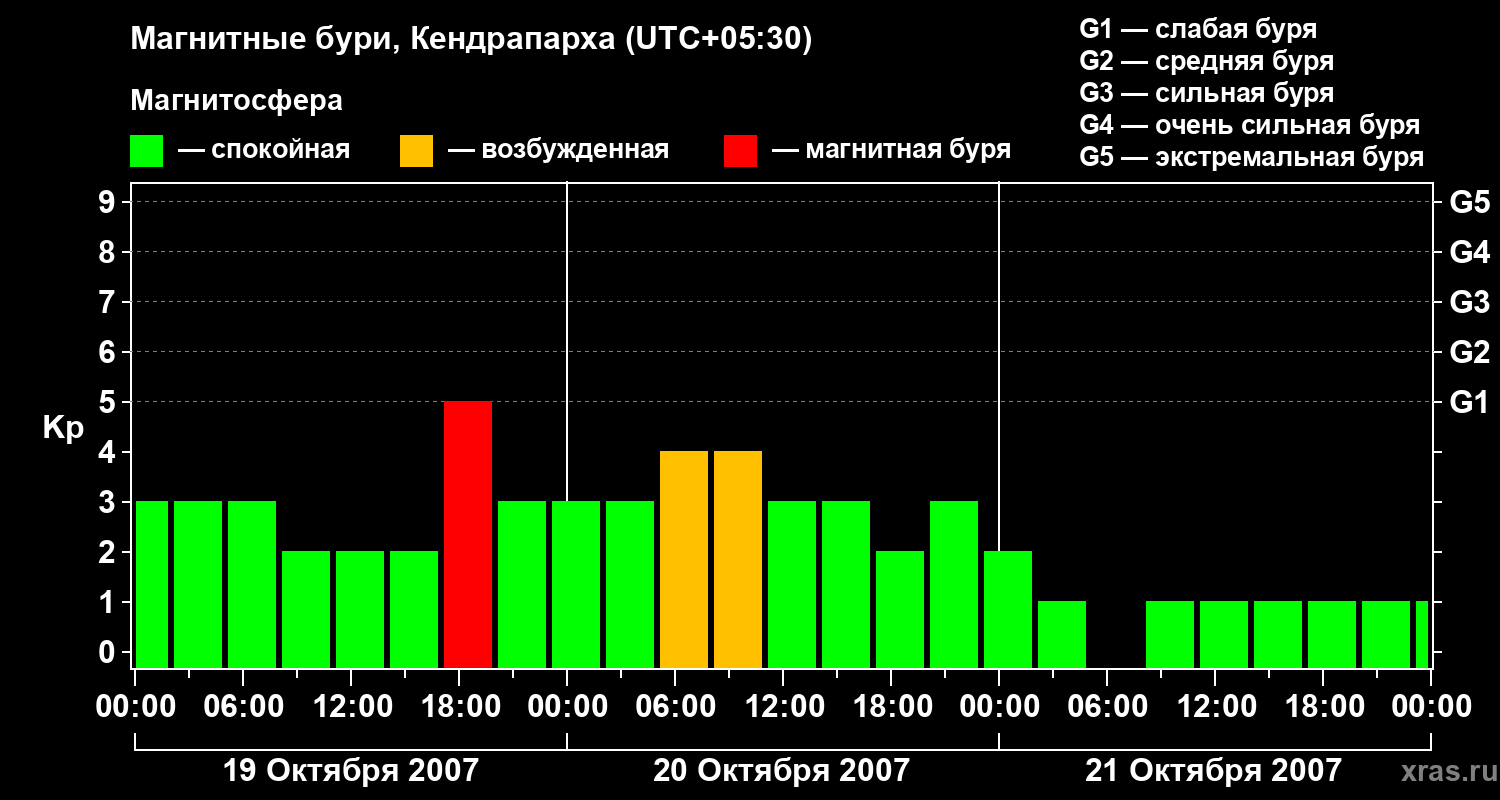 Магнитные бури в Кендрапархе 21 октября 2007 года