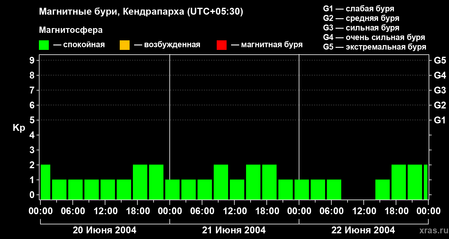 Магнитные бури в Кендрапархе 22 июня 2004 года