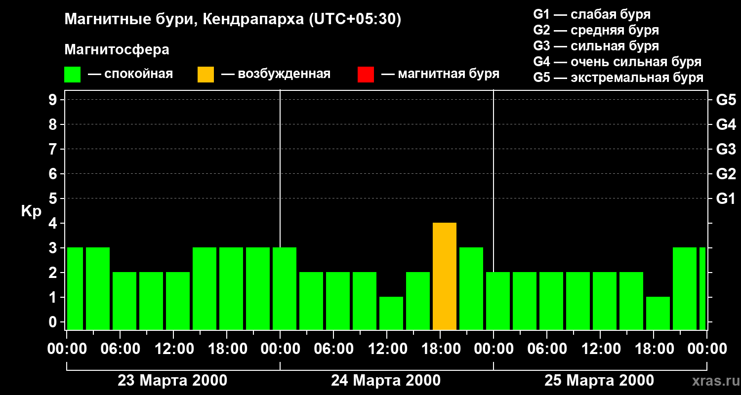 Магнитные бури в Кендрапархе — 25 марта 2000 года