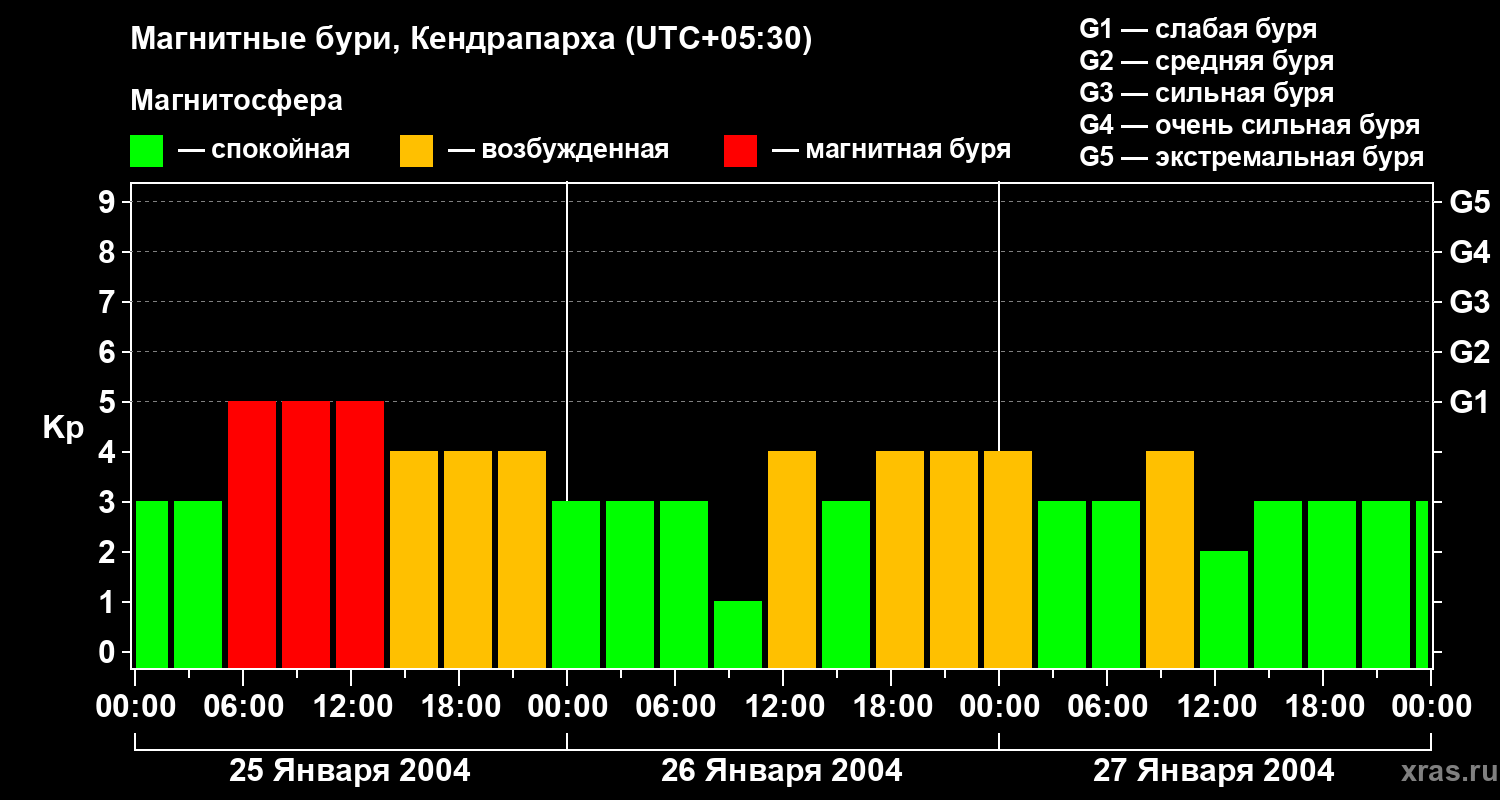 Магнитные бури в Кендрапархе — 27 января 2004 года