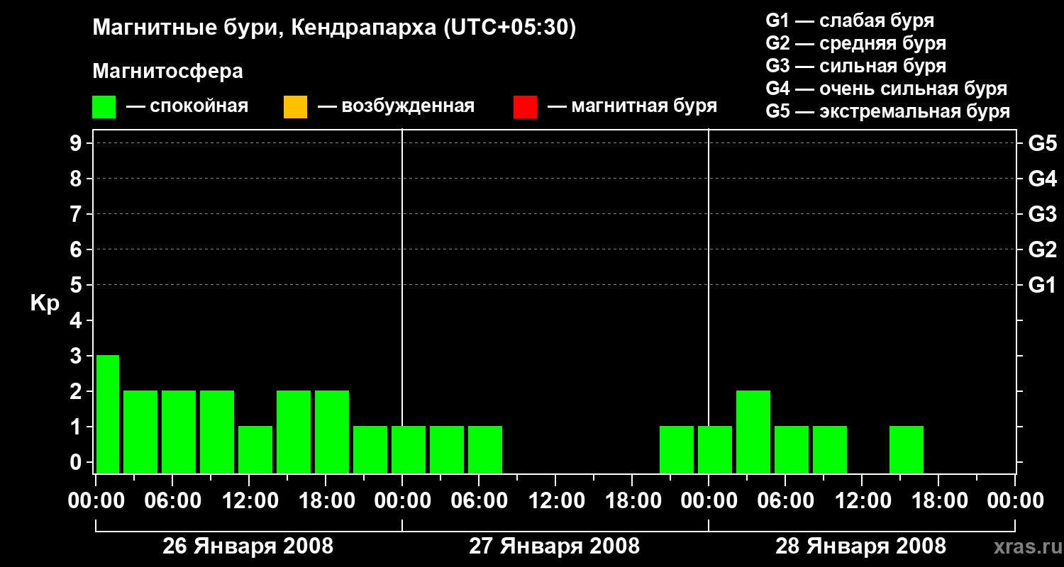 Магнитные бури в Кендрапархе — 28 января 2008 года