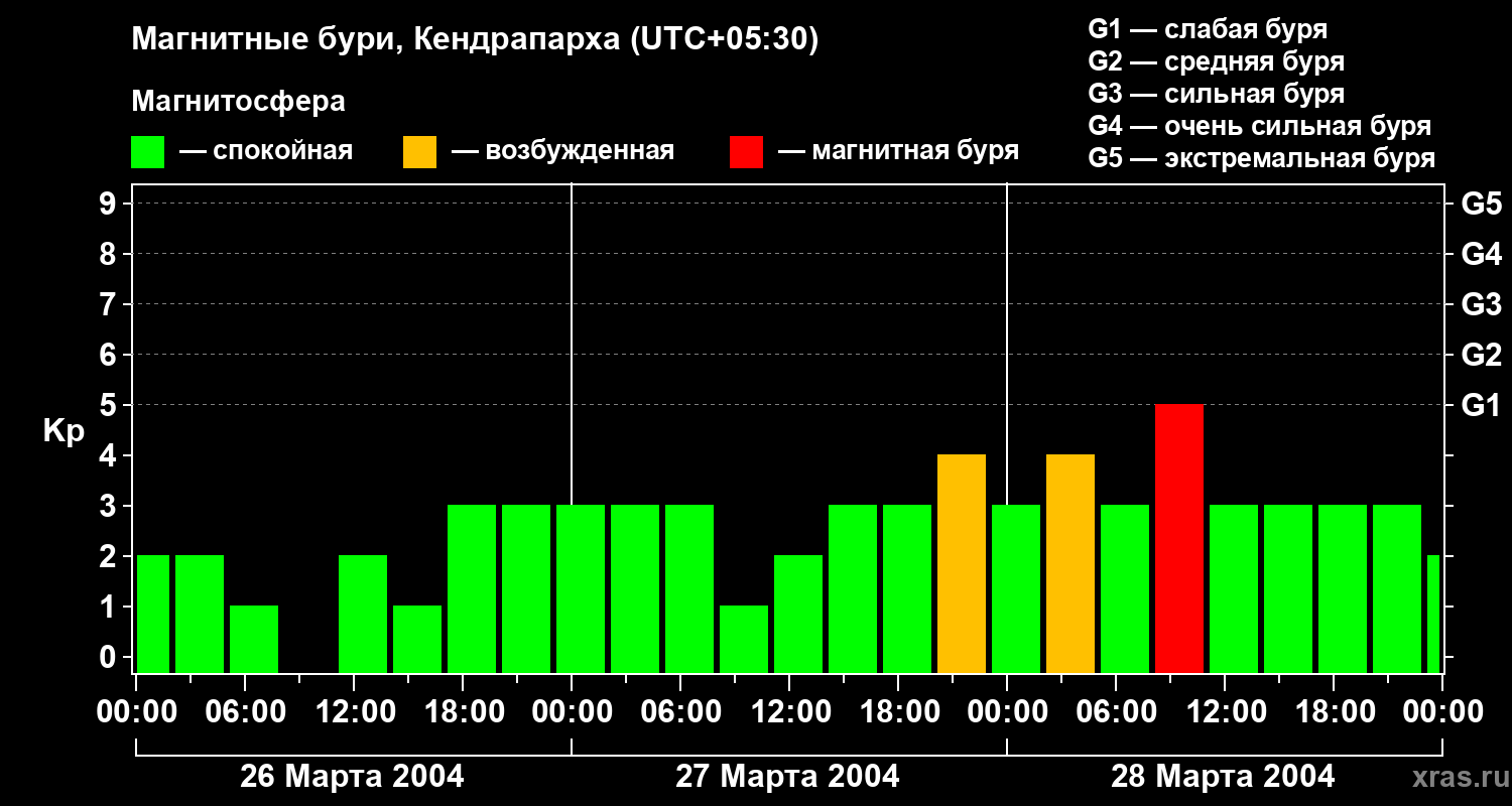 Магнитные бури в Кендрапархе — 28 марта 2004 года