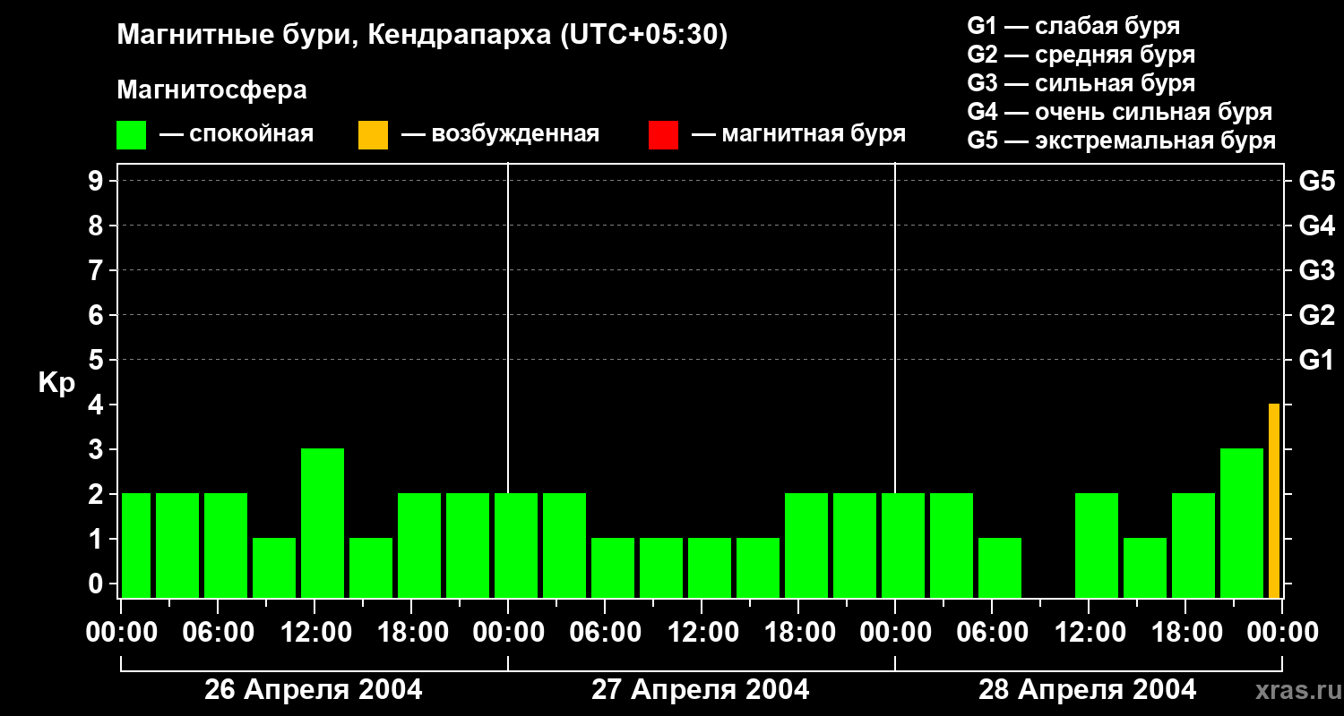 Магнитные бури в Кендрапархе 28 апреля 2004 года