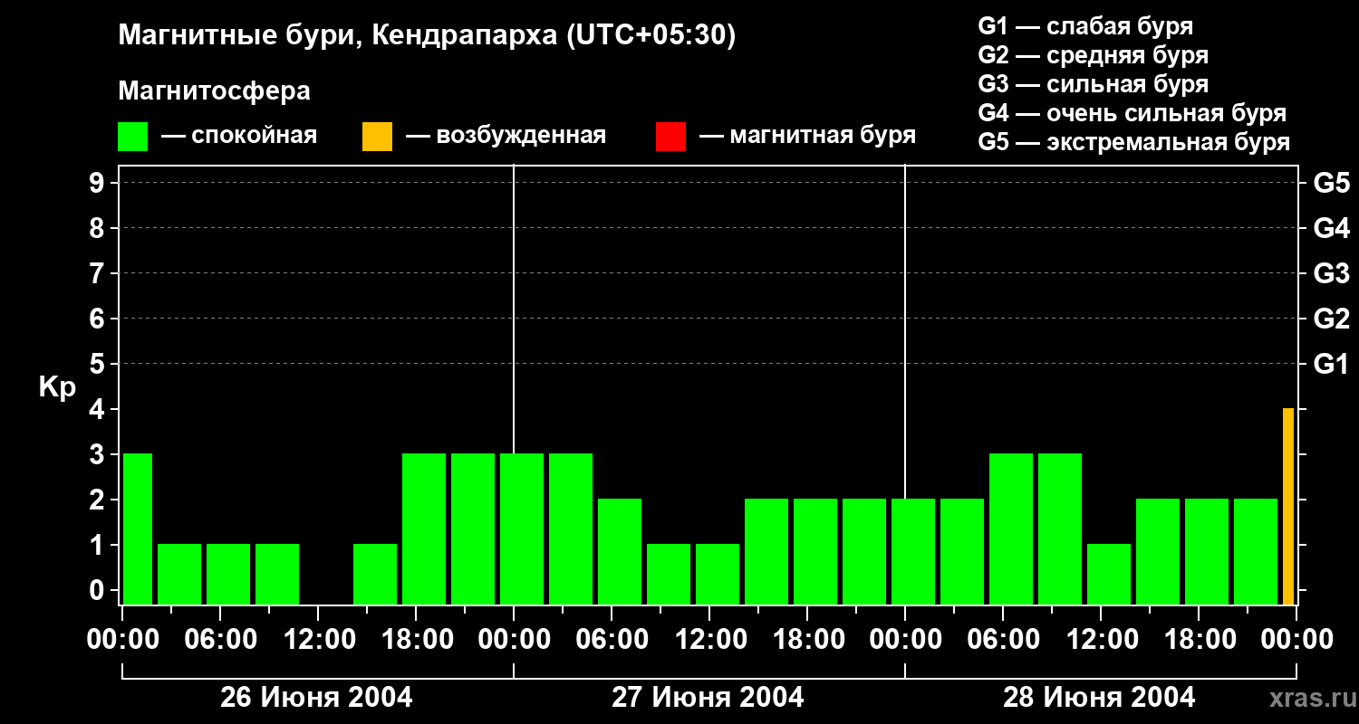 Магнитные бури в Кендрапархе — 28 июня 2004 года