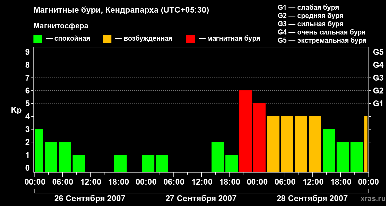 Магнитные бури в Кендрапархе 28 сентября 2007 года
