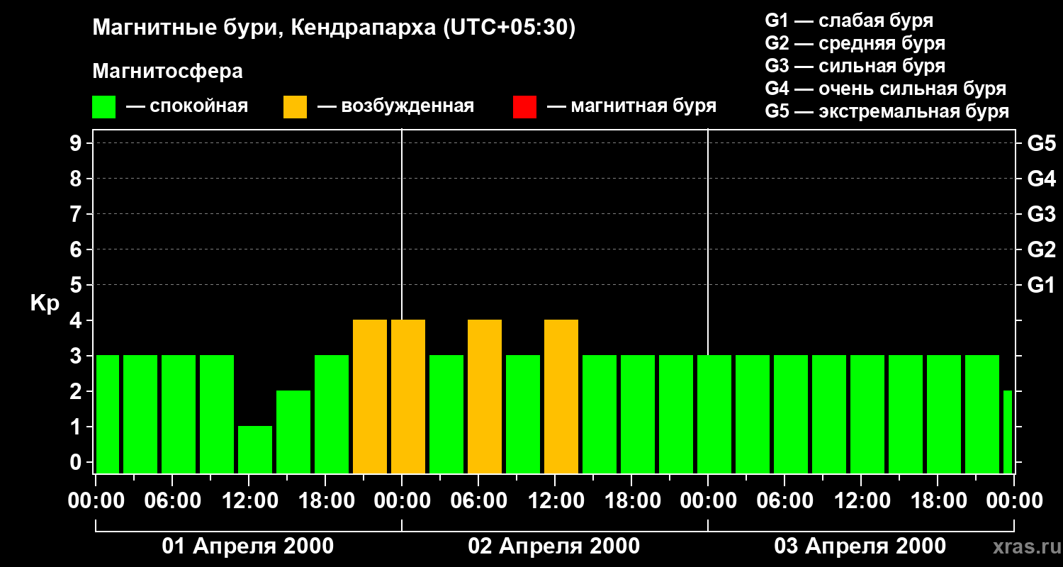 Магнитные бури в Кендрапархе — 3 апреля 2000 года