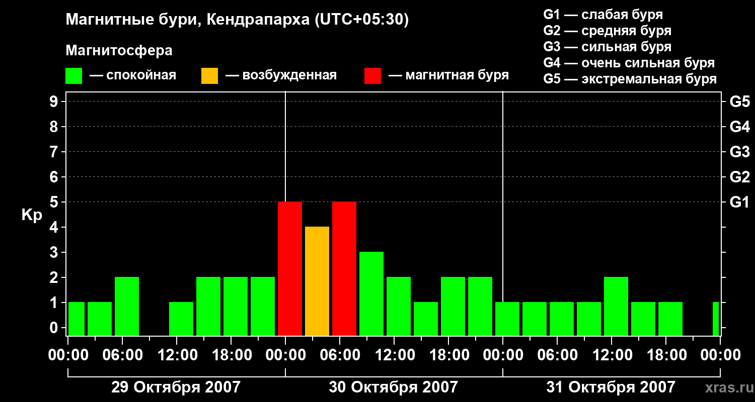 Магнитные бури в Кендрапархе в октябре 2007 года