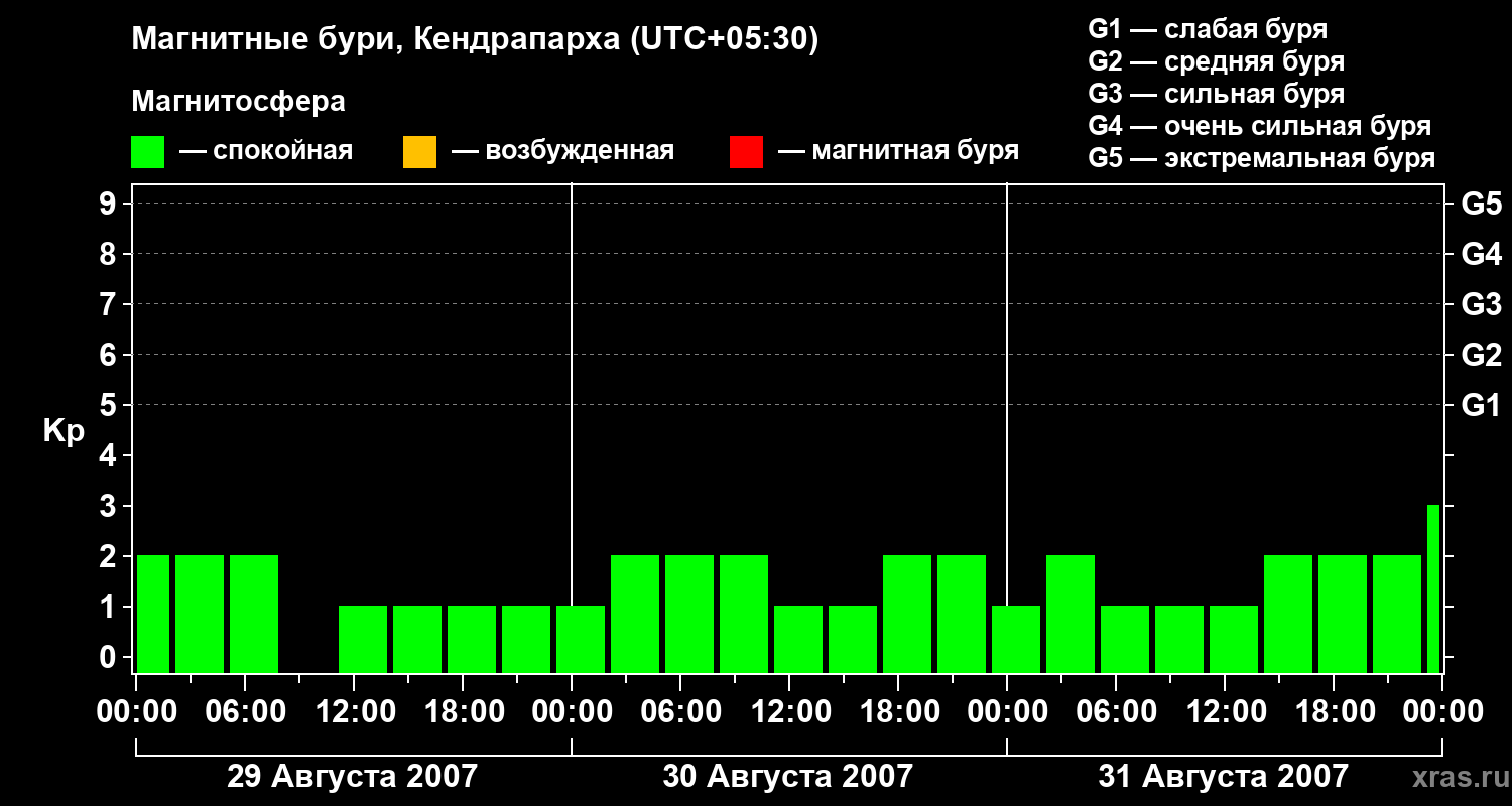 Магнитные бури в Кендрапархе 31 августа 2007 года