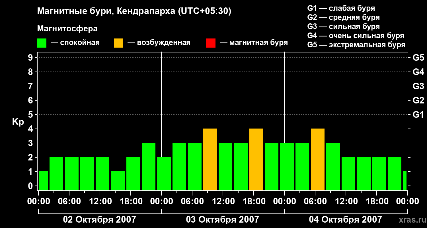Магнитные бури в Кендрапархе 4 октября 2007 года