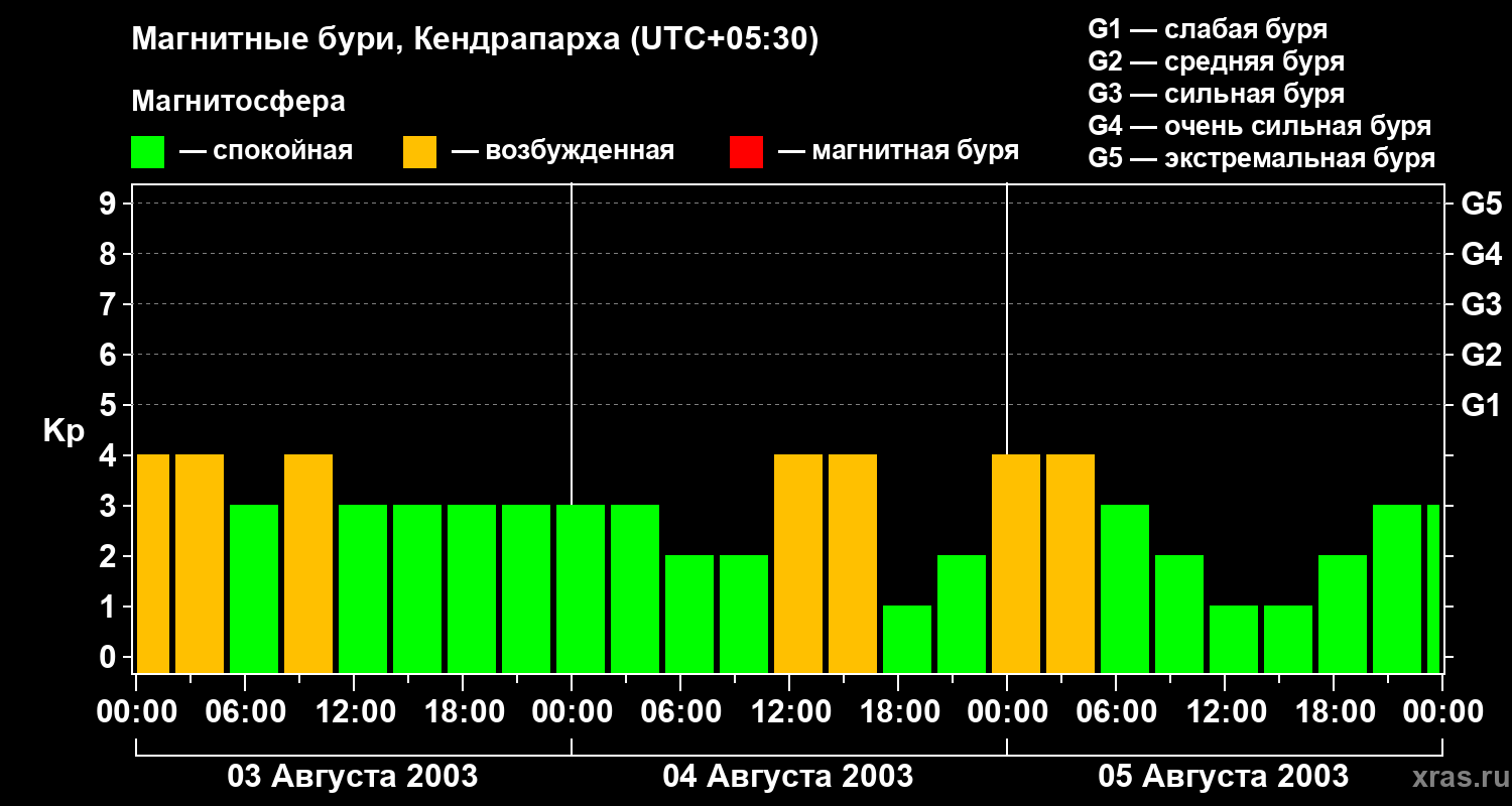 Магнитные бури в Кендрапархе — 5 августа 2003 года