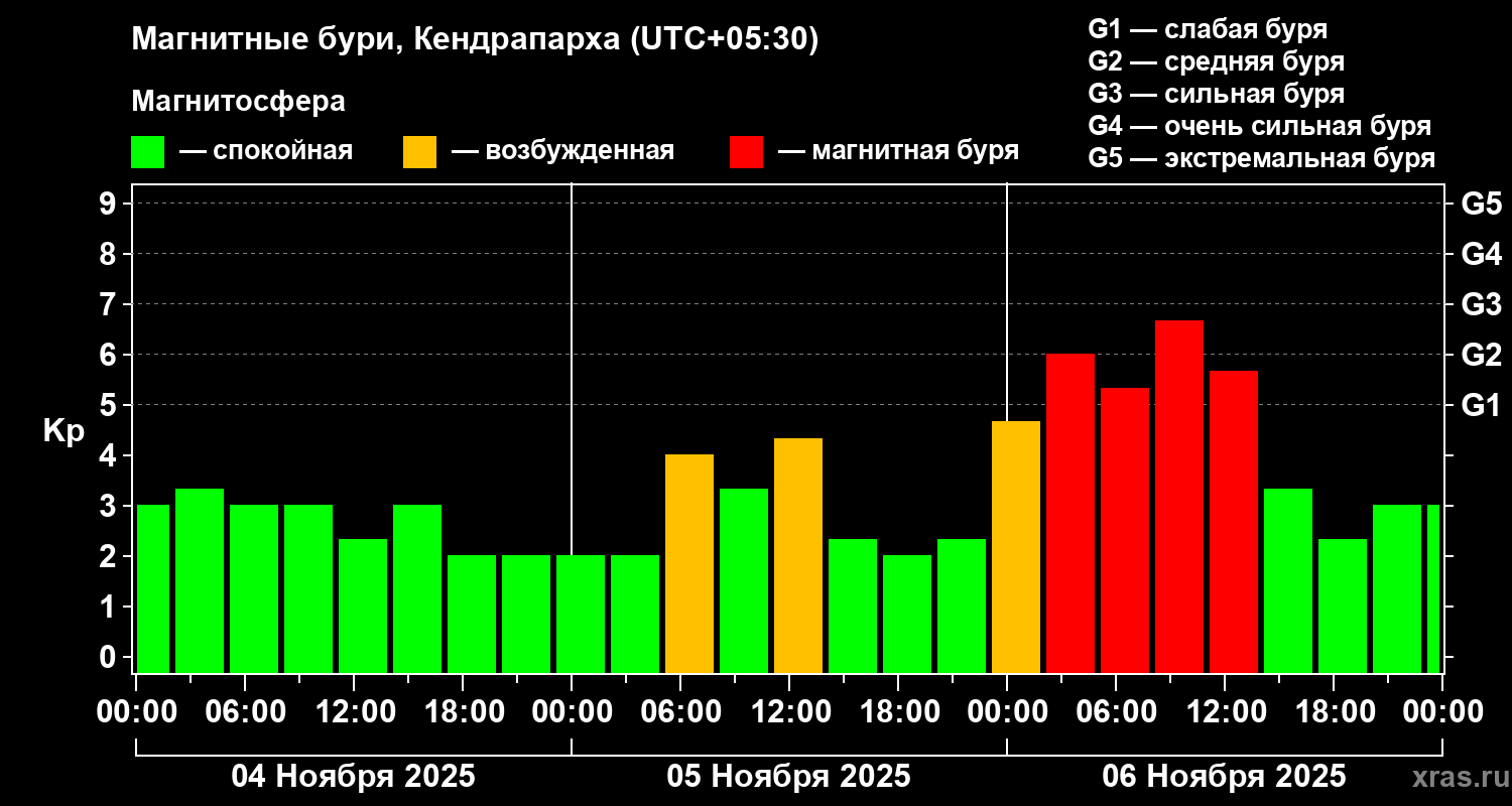 Магнитные бури в Кендрапархе 6 ноября 2025 года