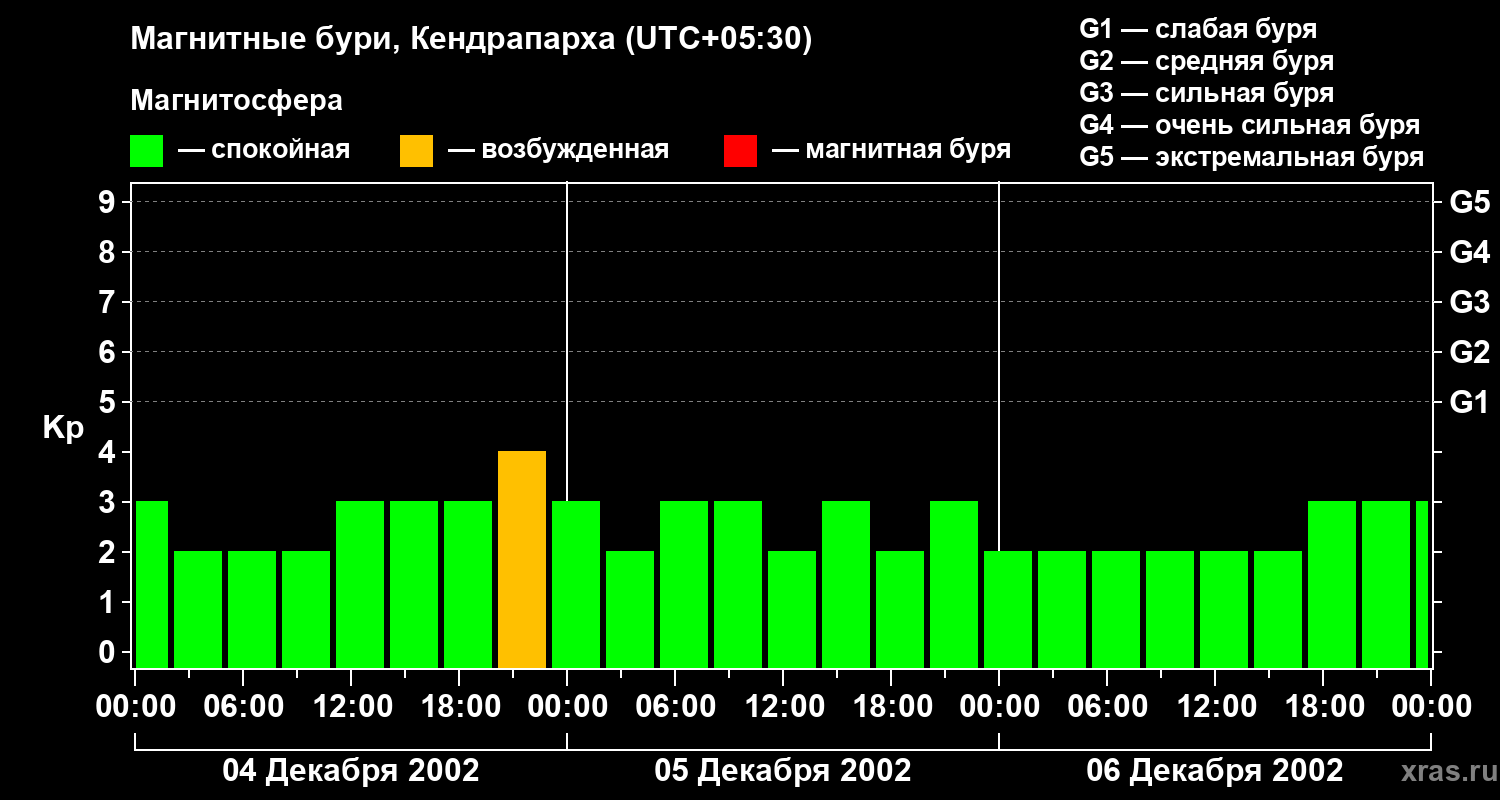 Магнитные бури в Кендрапархе в декабре 2002 года