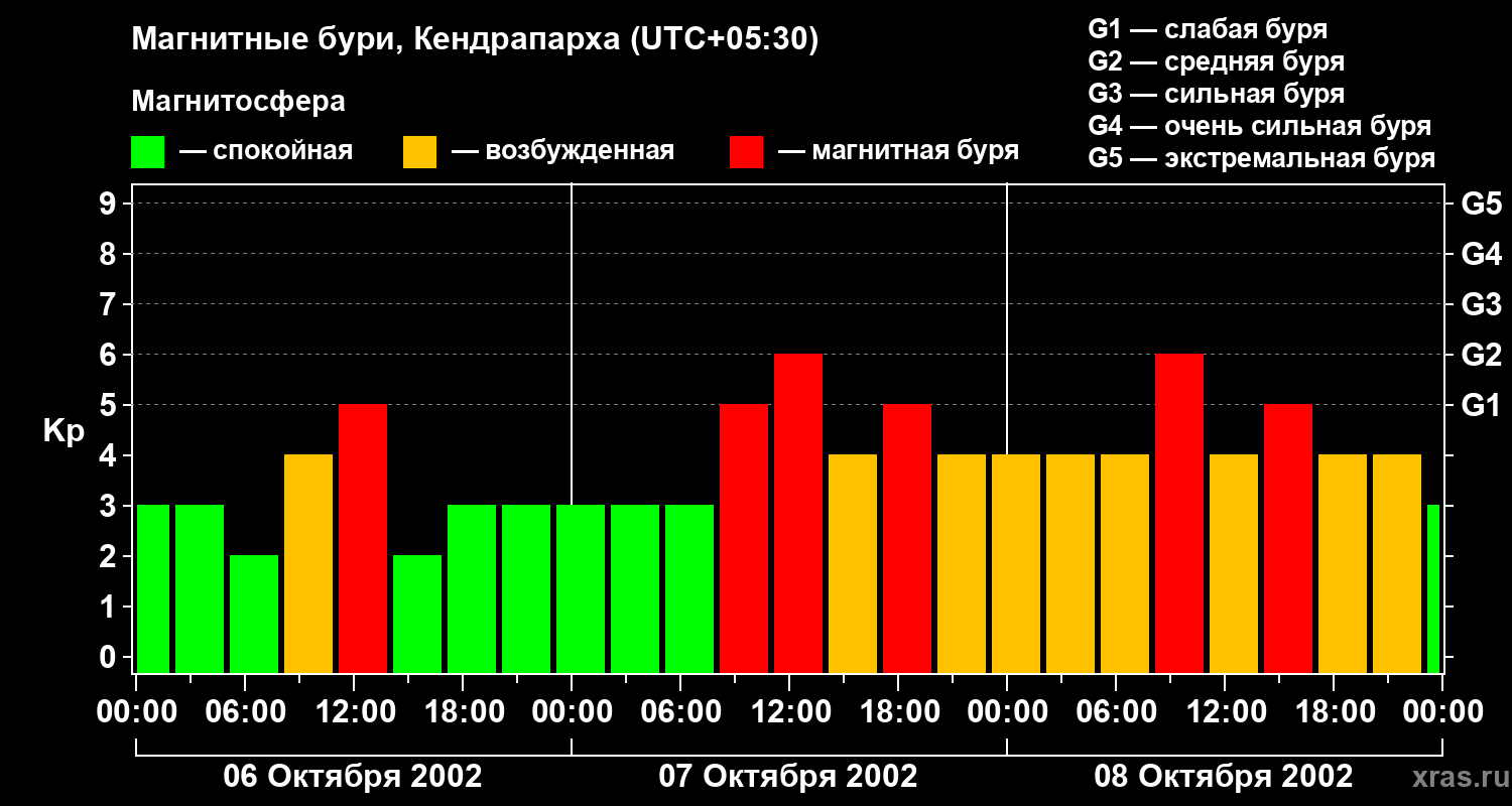 Магнитные бури в Кендрапархе в октябре 2002 года