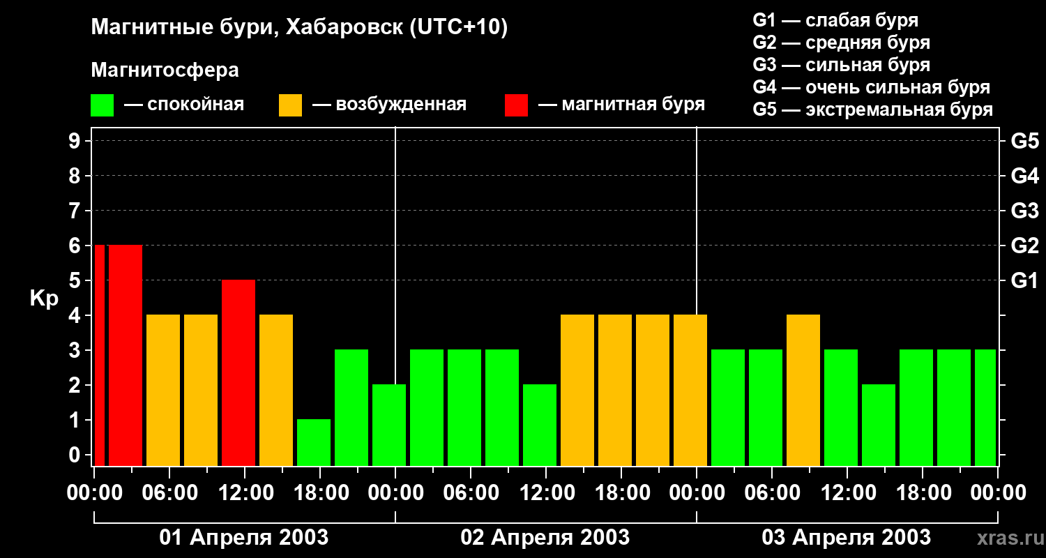 Магнитные бури в Хабаровске — 3 апреля 2003 года