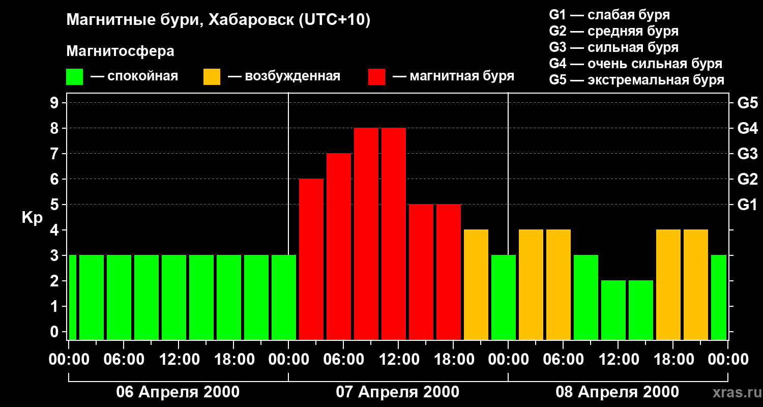 Магнитные бури в Хабаровске — 8 апреля 2000 года