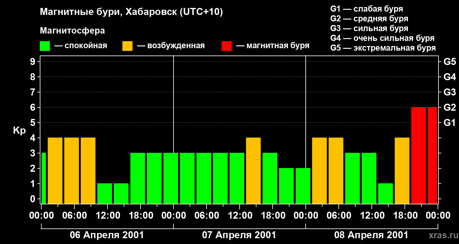 Магнитные бури в Хабаровске — 8 апреля 2001 года