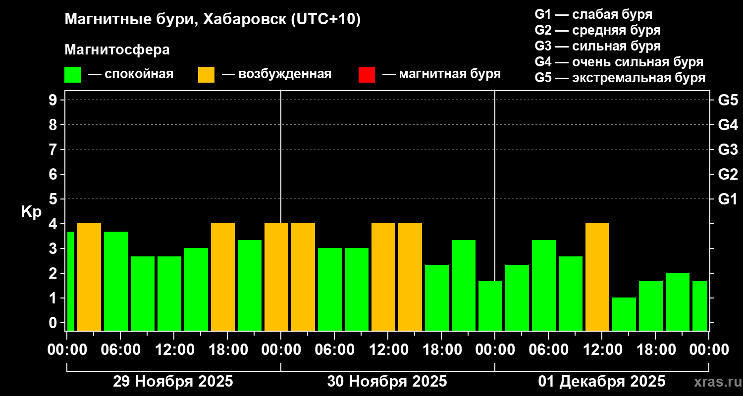 Магнитные бури в Хабаровске 1 декабря 2025 года