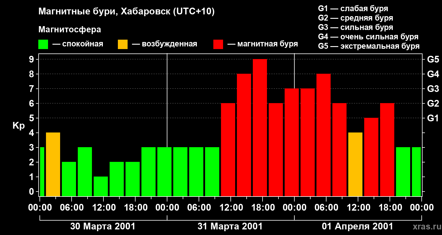 Магнитные бури в Хабаровске — 1 апреля 2001 года