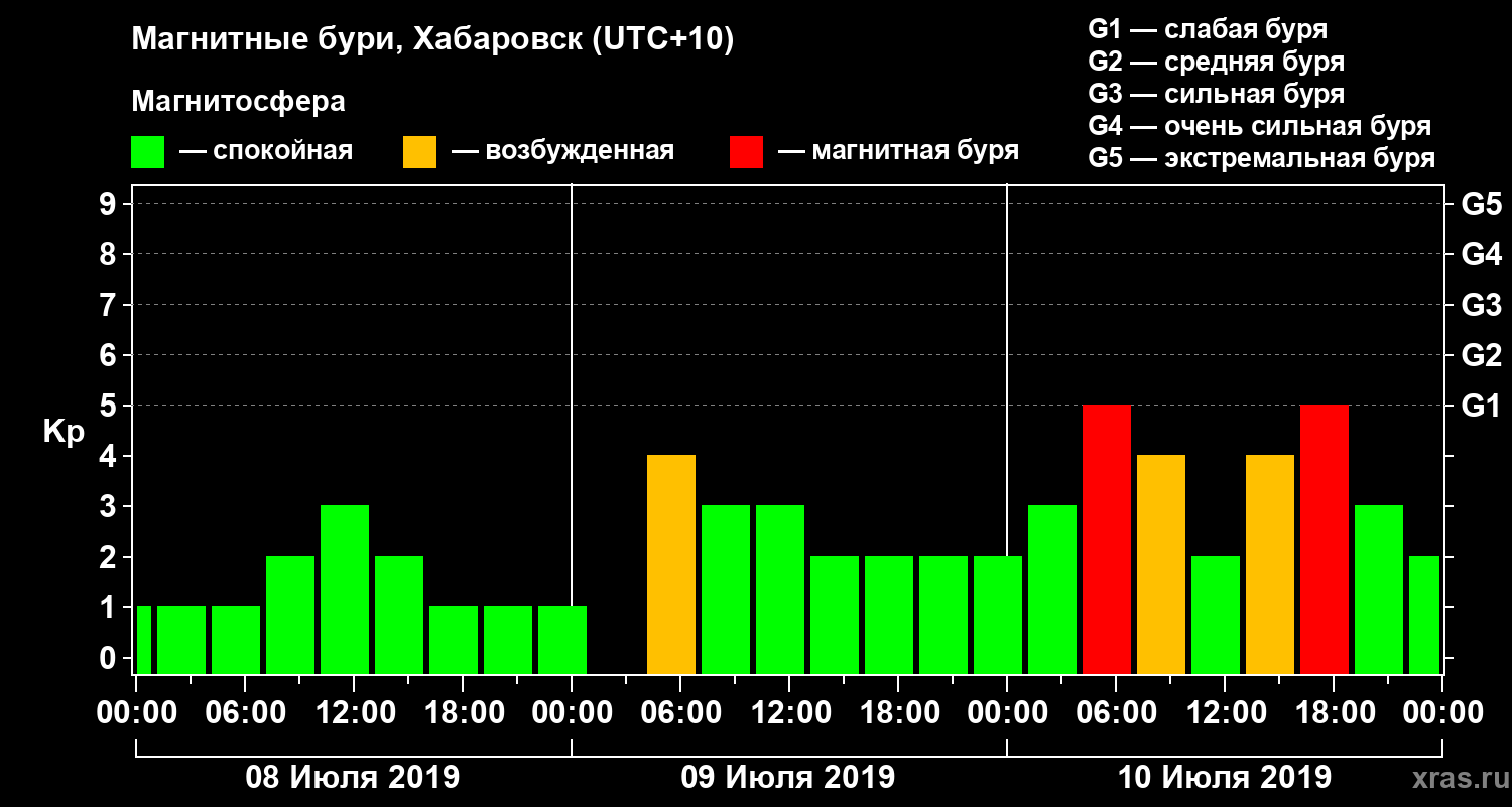 Магнитные бури в Хабаровске — 10 июля 2019 года