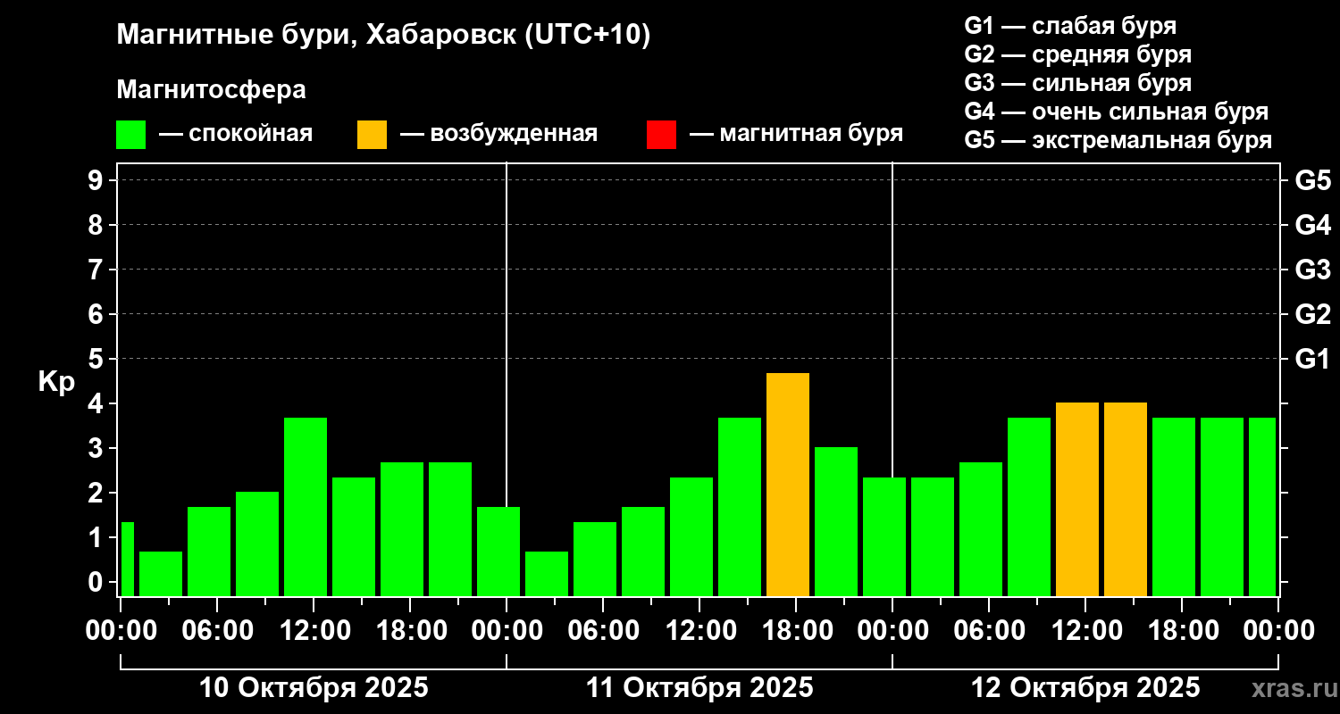Магнитные бури в Хабаровске 12 октября 2025 года