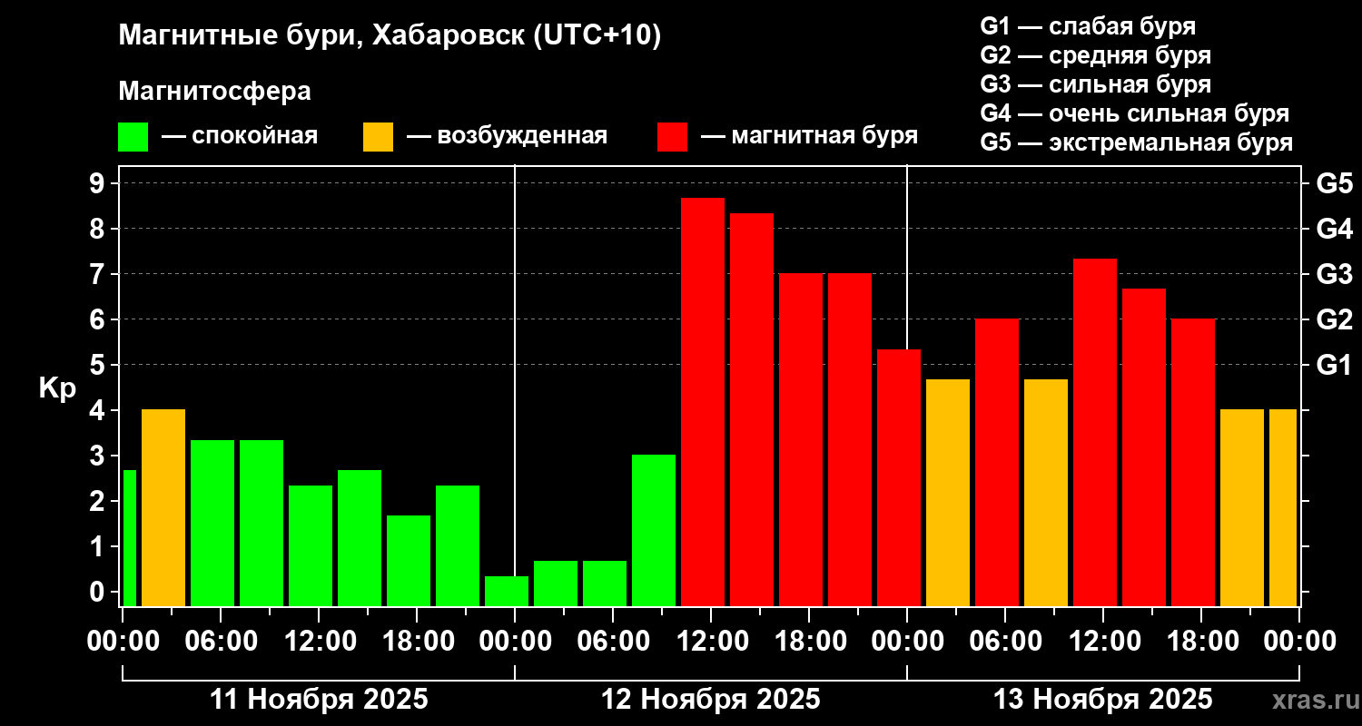 Магнитные бури в Хабаровске — 13 ноября 2025 года