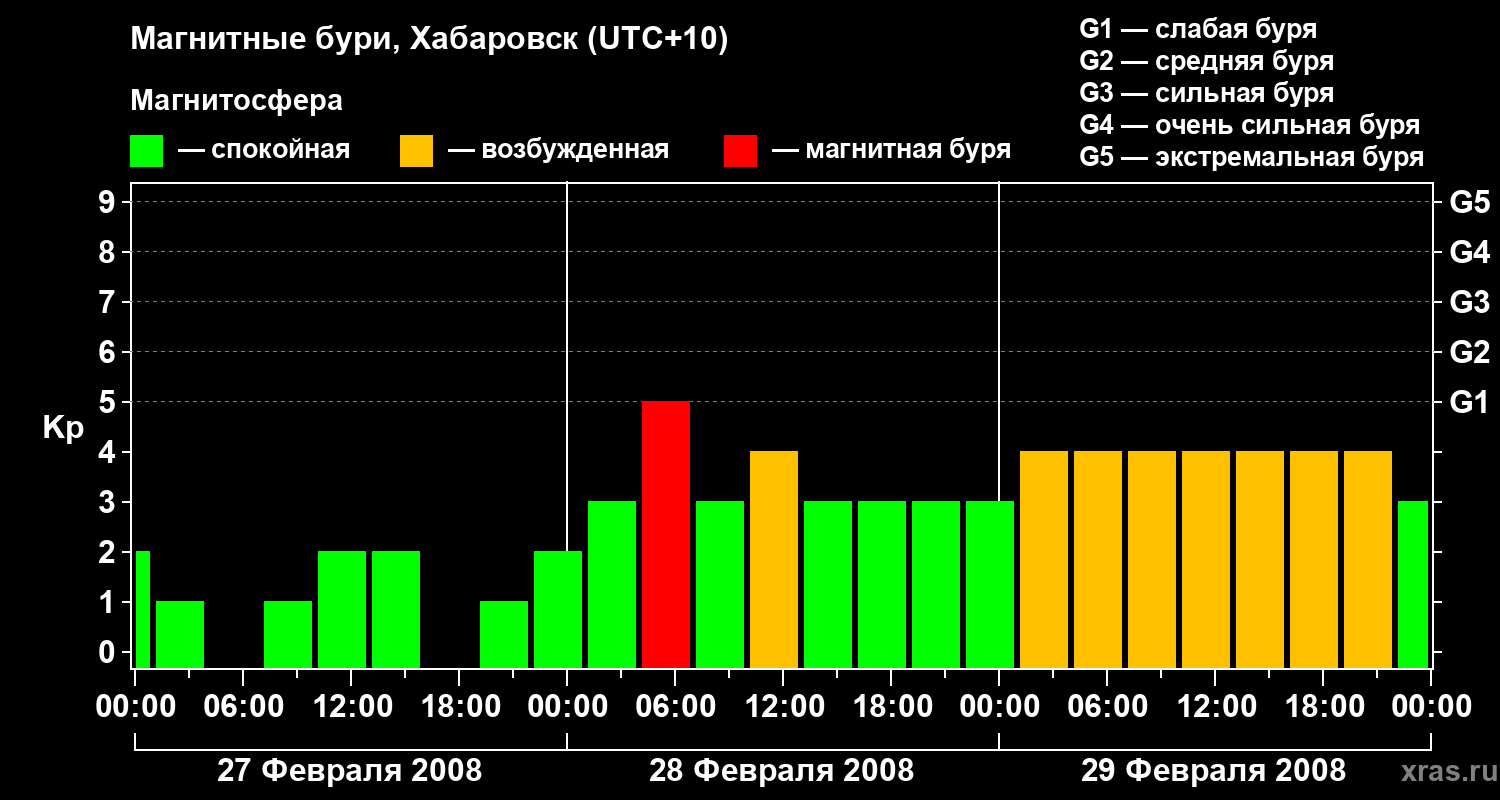 Магнитные бури в Хабаровске — 29 февраля 2008 года