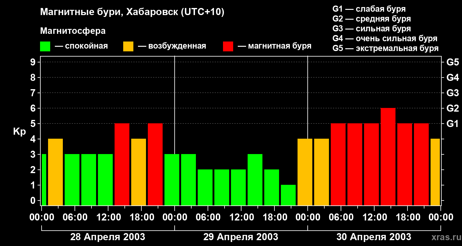 Магнитные бури в Хабаровске — 30 апреля 2003 года