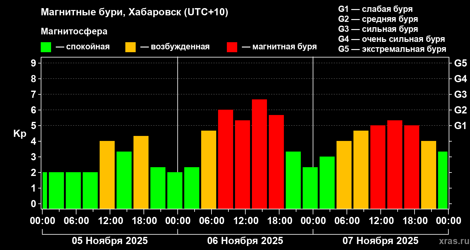 Магнитные бури в Хабаровске — 7 ноября 2025 года