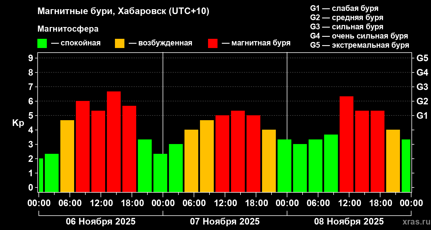 Магнитные бури в Хабаровске — 8 ноября 2025 года