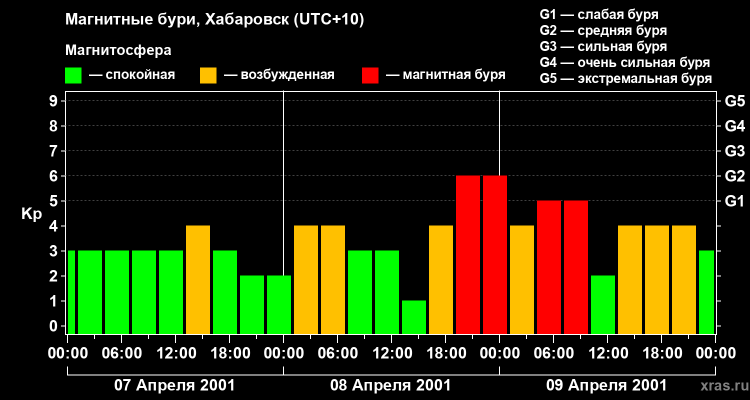 Магнитные бури в Хабаровске — 9 апреля 2001 года