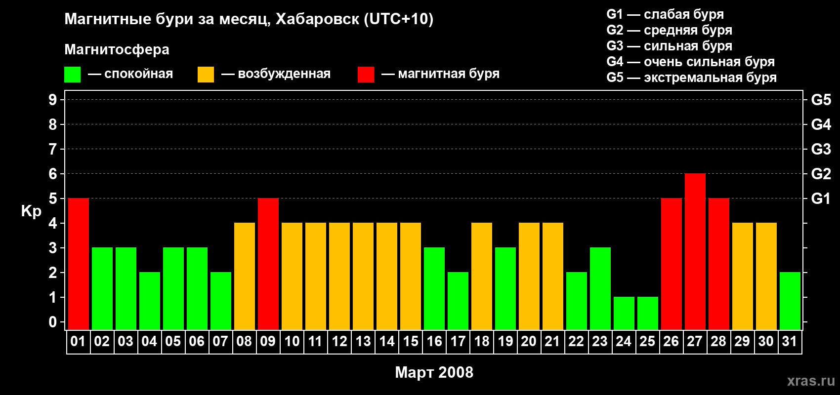 Список магнитных бурь в марте 2008 года