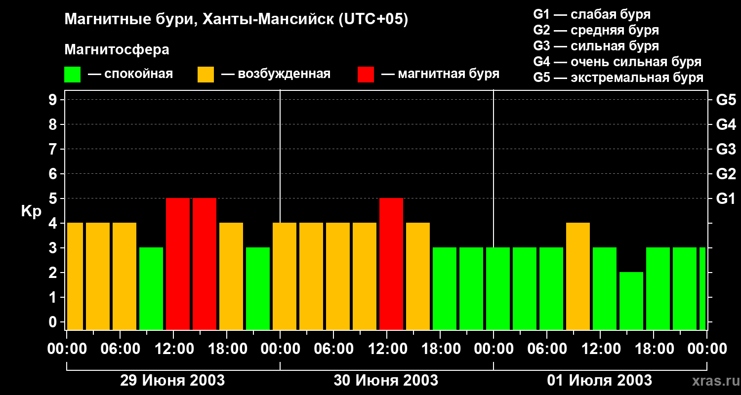 Магнитные бури в Ханты-Мансийске — 1 июля 2003 года