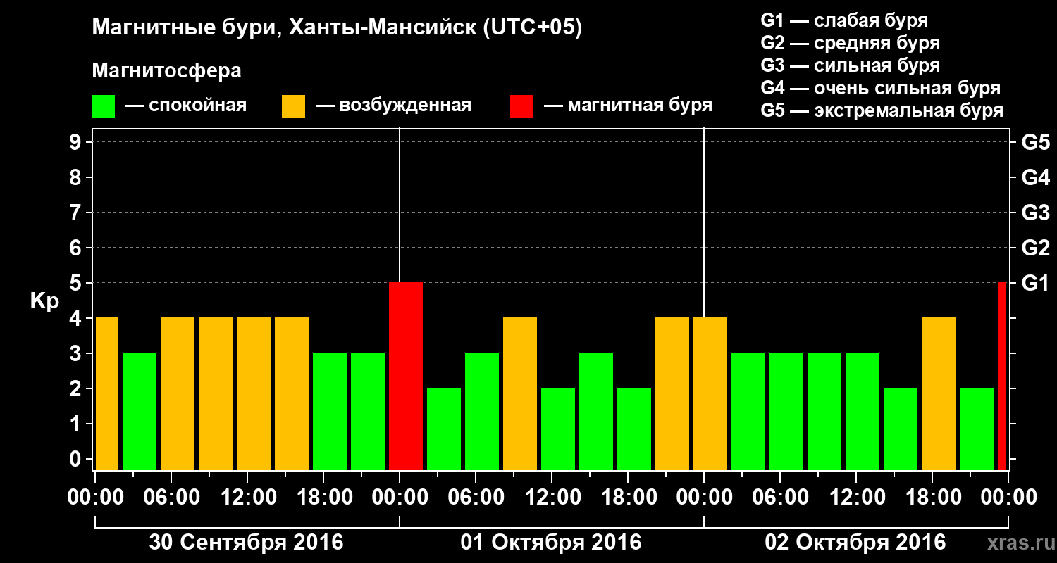 Магнитные бури в Ханты-Мансийске 2 октября 2016 года