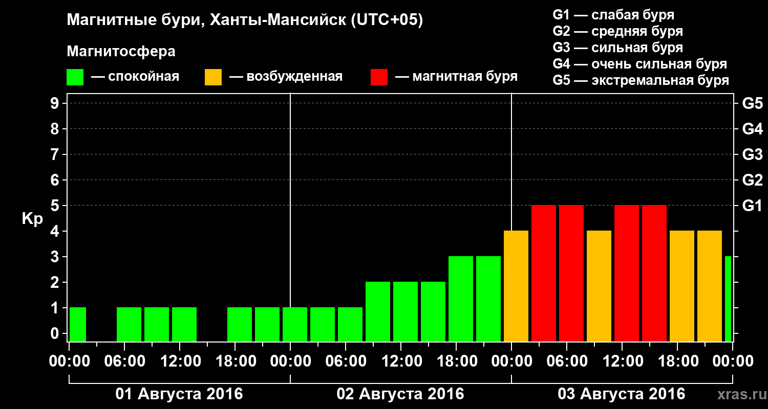 Магнитные бури в Ханты-Мансийске 3 августа 2016 года