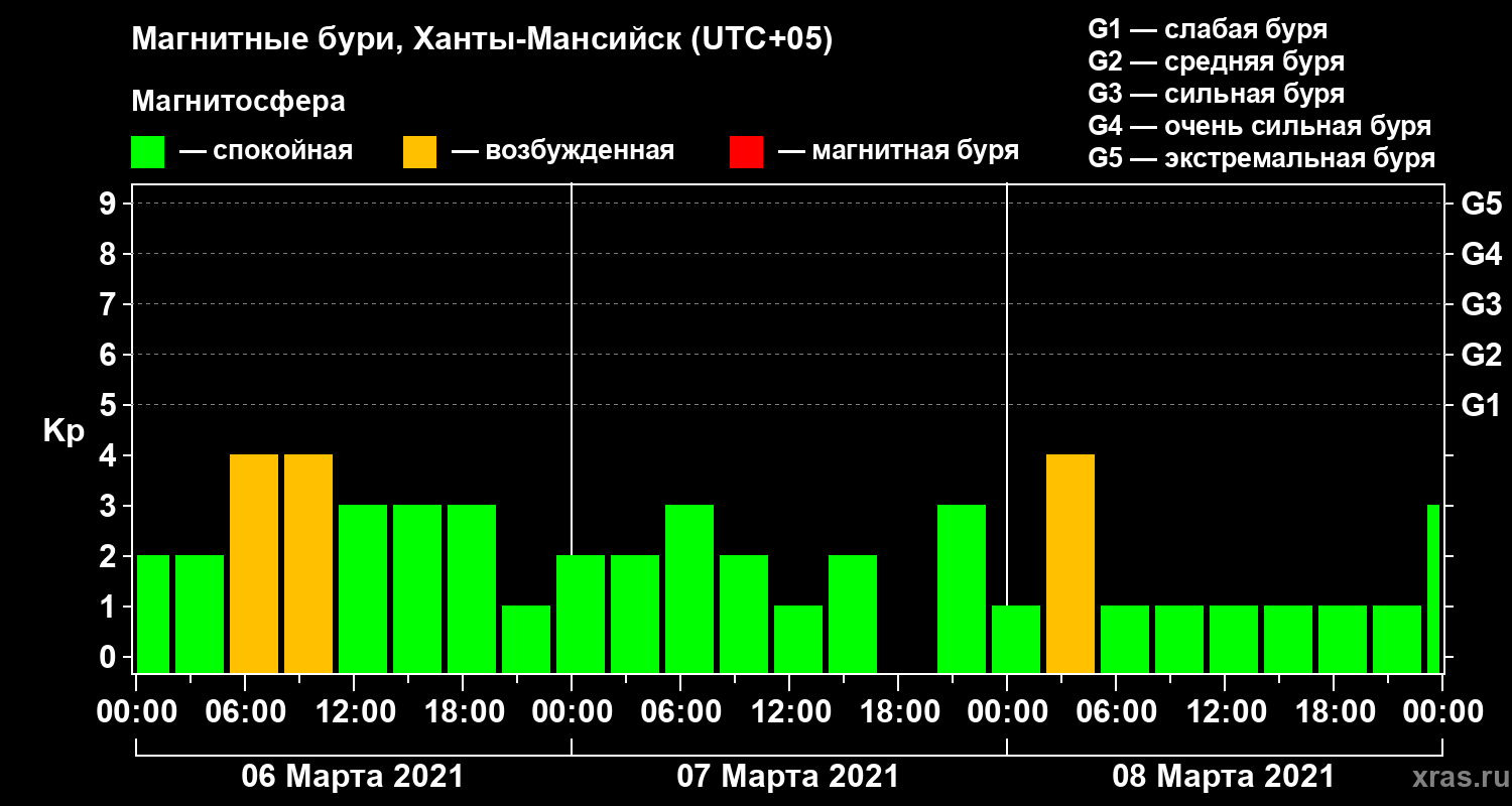 Магнитные бури в Ханты-Мансийске в марте 2021 года