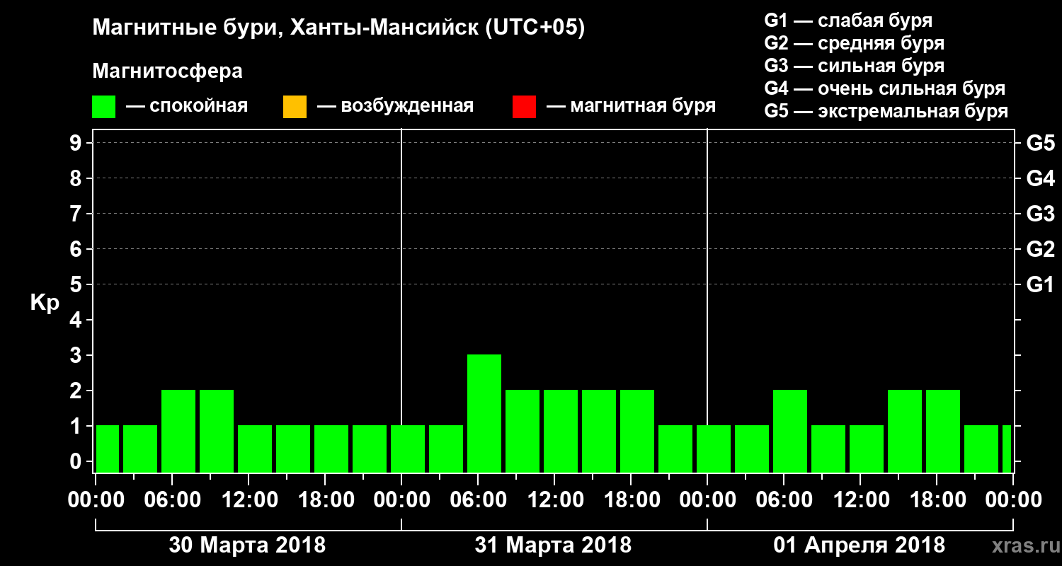 Магнитные бури в Ханты-Мансийске 1 апреля 2018 года