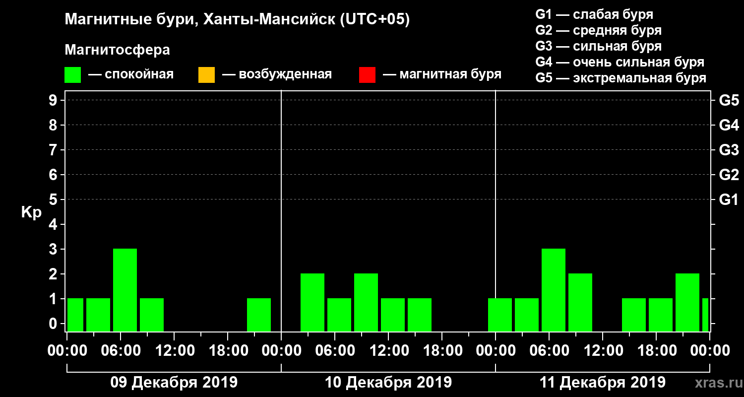 Магнитные бури в Ханты-Мансийске 11 декабря 2019 года