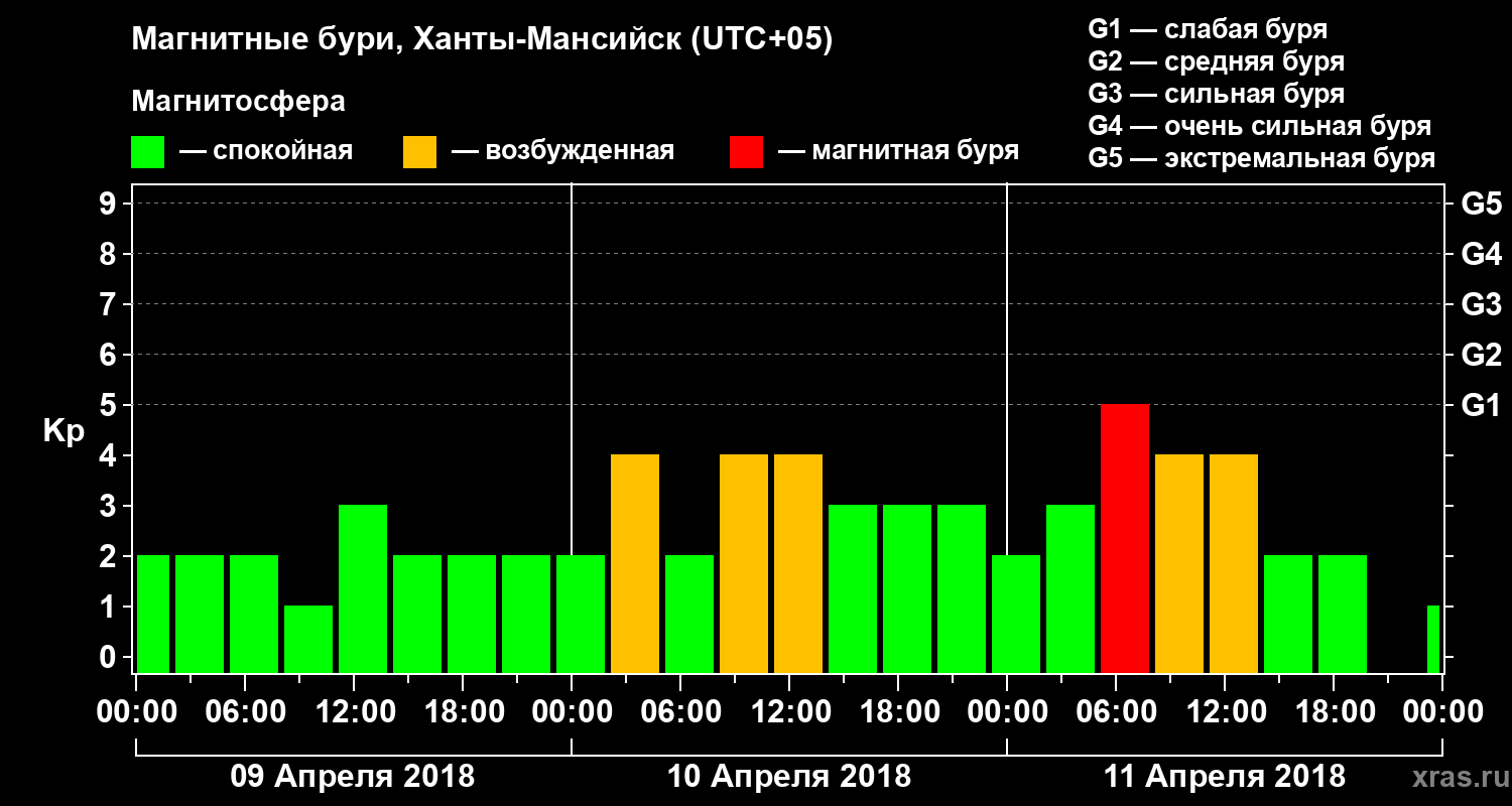 Магнитные бури в Ханты-Мансийске 11 апреля 2018 года