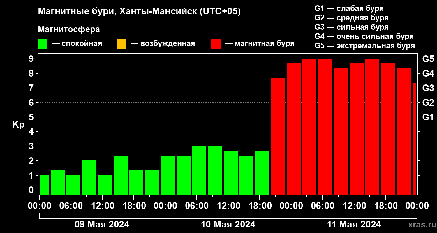 Магнитные бури в Ханты-Мансийске — 11 мая 2024 года