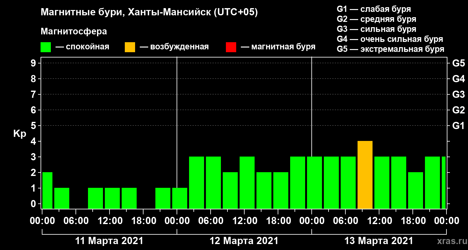 Магнитные бури в Ханты-Мансийске 13 марта 2021 года