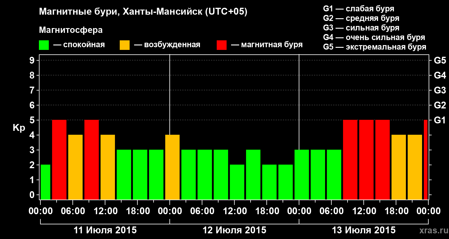Магнитные бури в Ханты-Мансийске 13 июля 2015 года