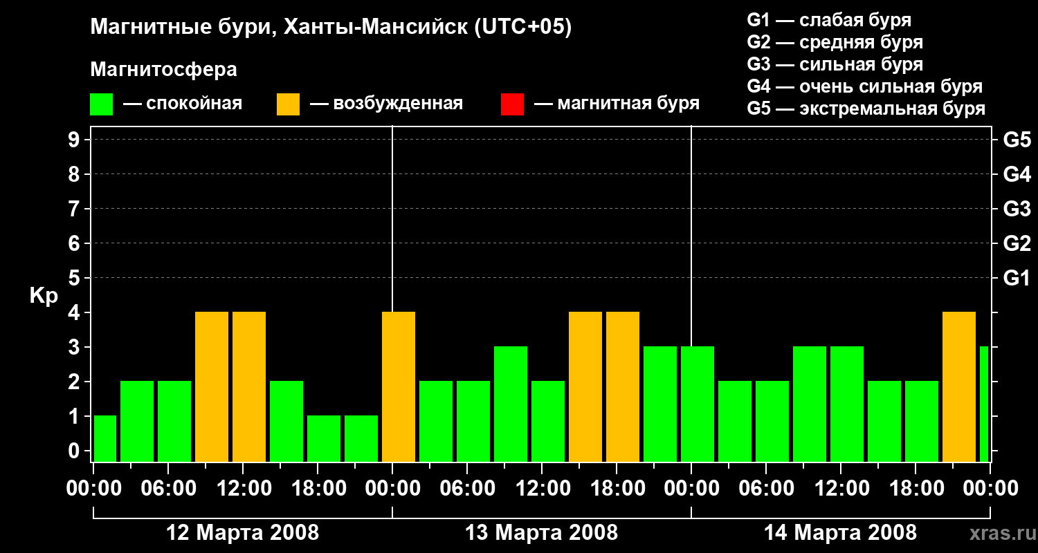 Магнитные бури в Ханты-Мансийске — 14 марта 2008 года