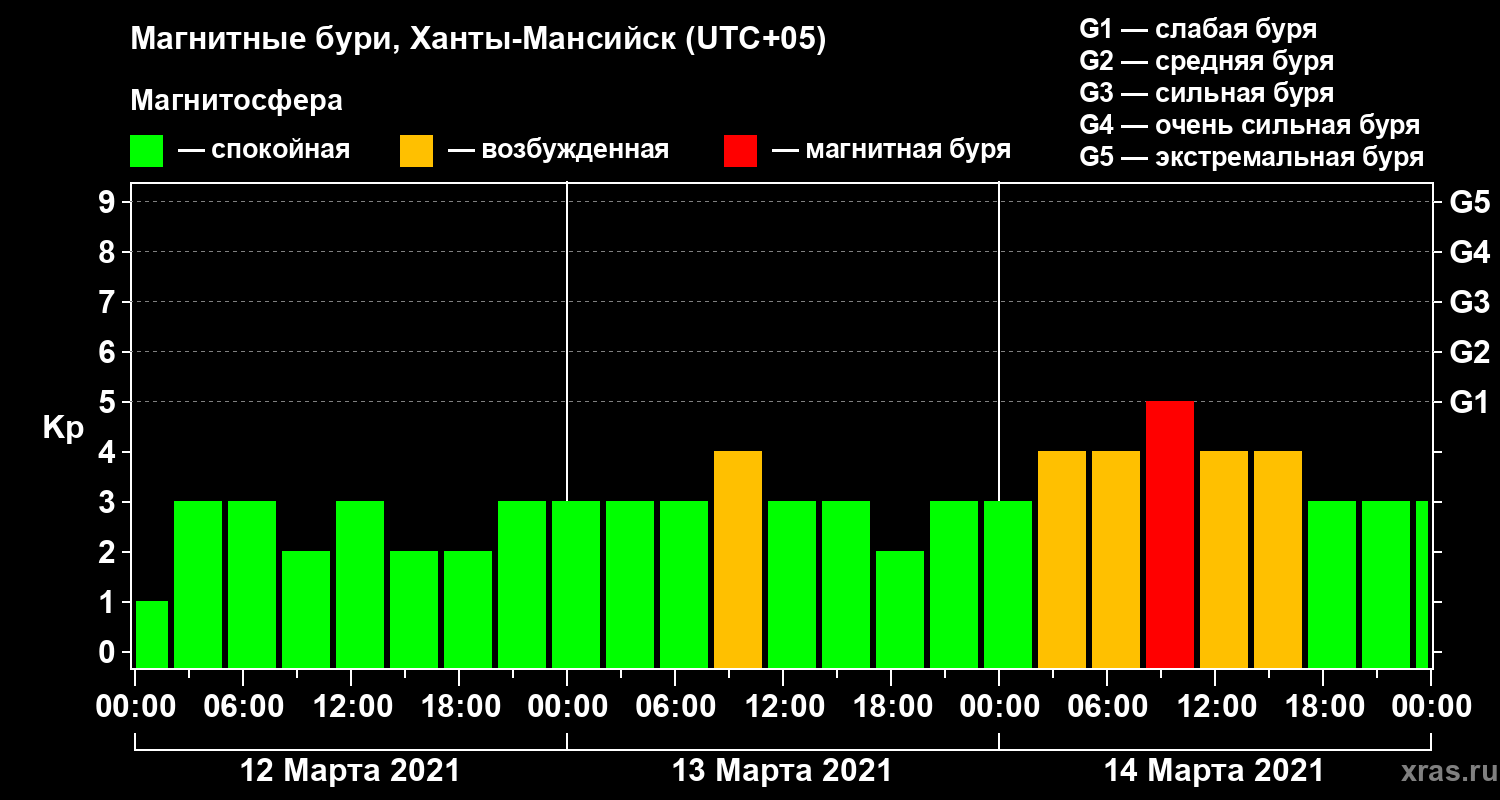 Магнитные бури в Ханты-Мансийске 14 марта 2021 года