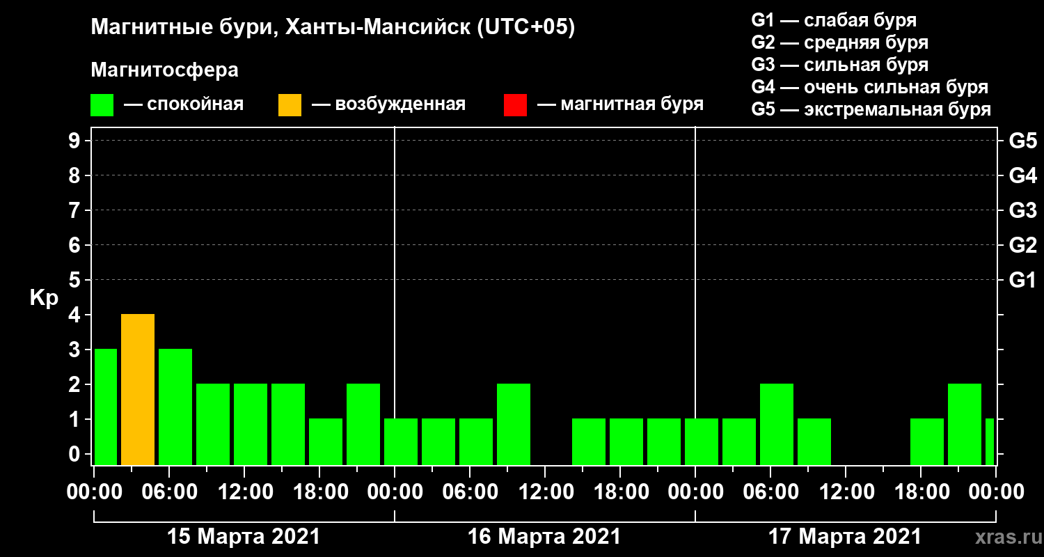 Магнитные бури в Ханты-Мансийске 17 марта 2021 года