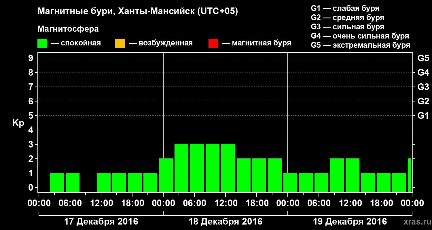 Магнитные бури в Ханты-Мансийске 19 декабря 2016 года
