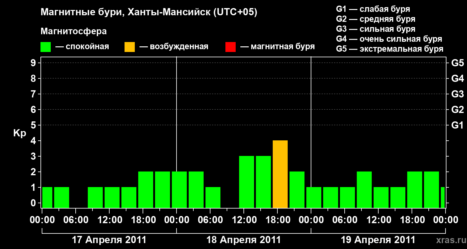 Магнитные бури в Ханты-Мансийске в апреле 2011 года