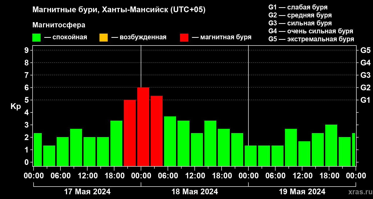 Магнитные бури в Ханты-Мансийске — 19 мая 2024 года