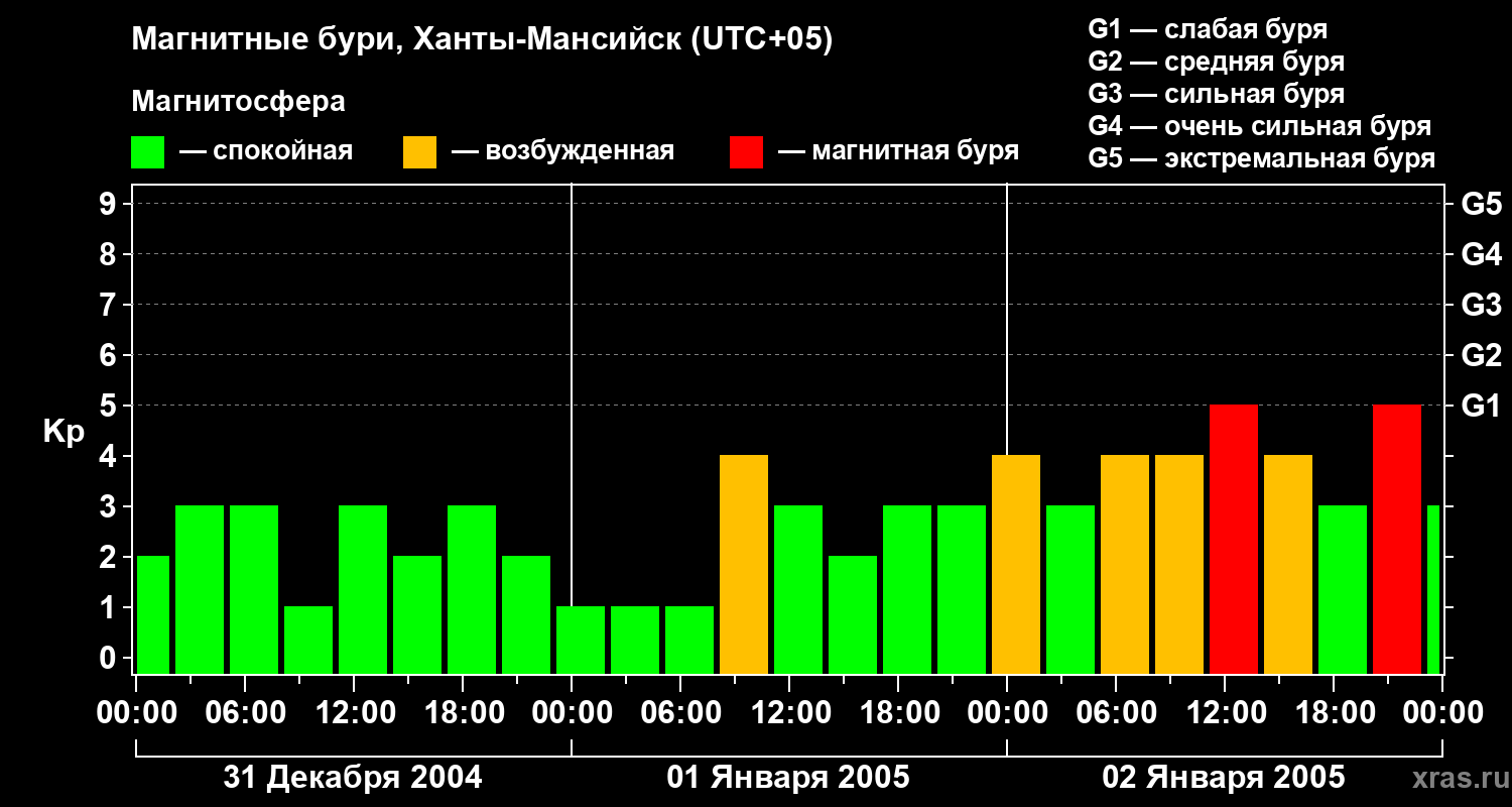Магнитные бури в Ханты-Мансийске — 2 января 2005 года